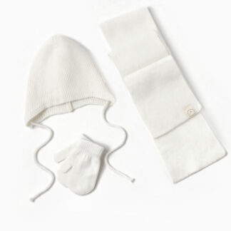 • Комплект вязаный детский (шапка, шарф, варежки) молочный